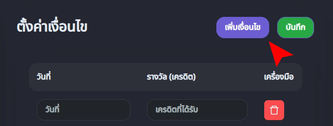 - กรอกวันที่ และรางวัล(เครดิต)