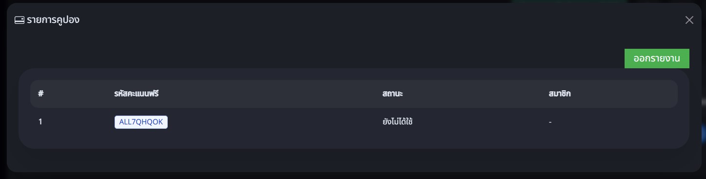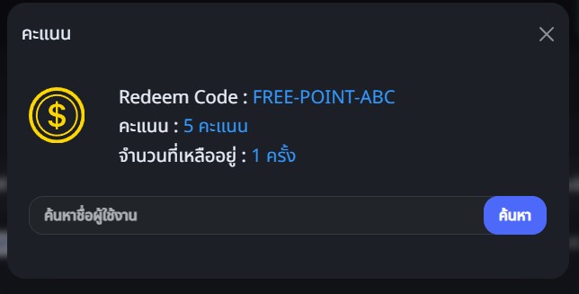 - รหัสคะแนนฟรี รหัสสำหรับใช้เติมคะแนนฟรีในหน้าเล่นของลูกค้า