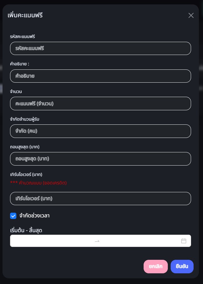 - จำกัดช่วงเวลา ตั้งค่าเวลาเริ่ม-สิ้นสุดของการรับคะแนนฟรี