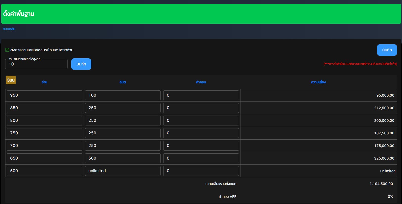 ตั้งค่าความเสี่ยงหวยทั้งหมด
