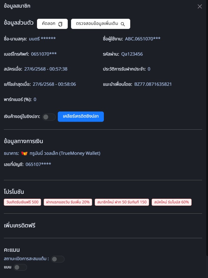 สามารถตรวจสอบข้อมูลลูกค้า, กดรับโปรโมชั่นให้ลูกค้า, กดเปิดการสะสมแต้มและอื่นๆ