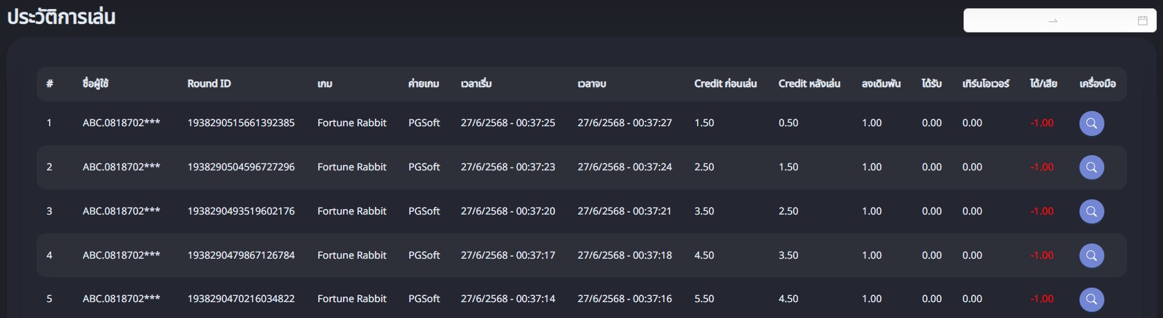 - กดปุ่มประวัติการเล่น