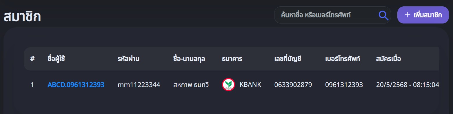 - กดปุ่มเพิ่มสมาชิก