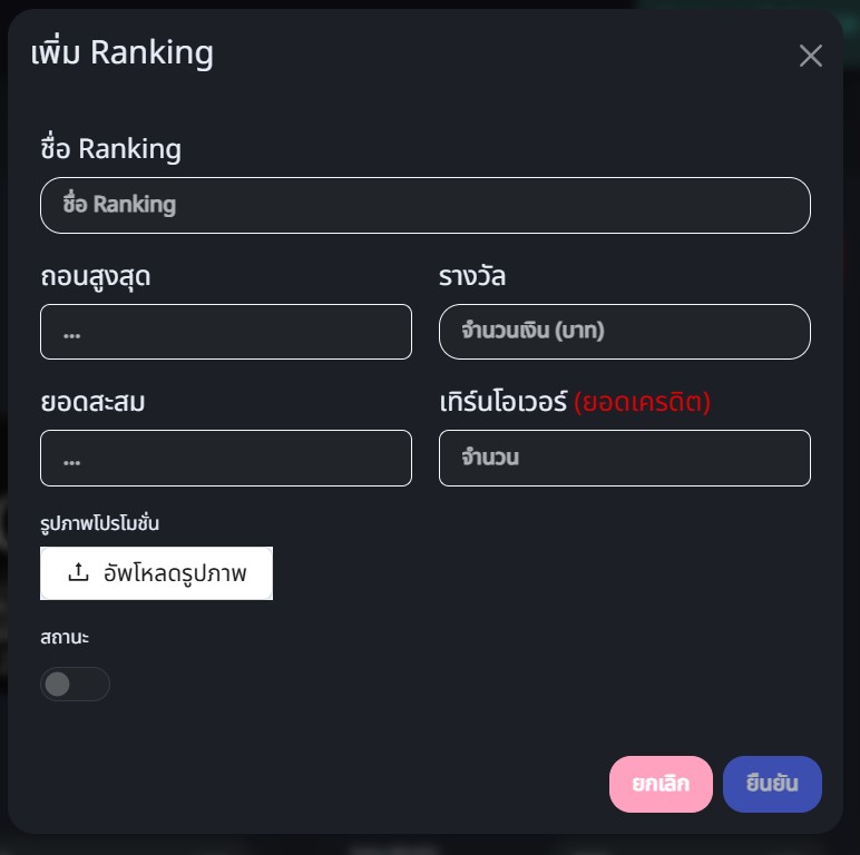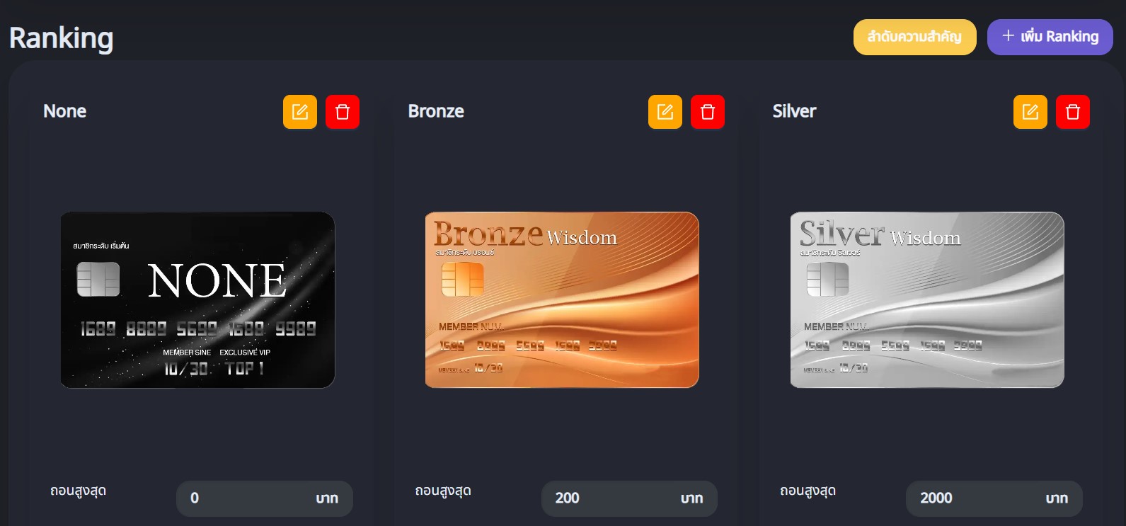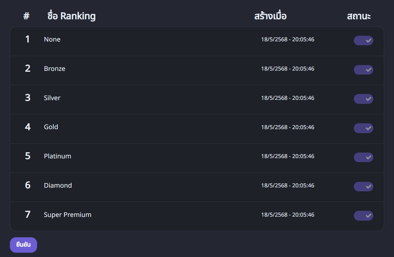 - ยอดสะสม ยอดเติมเงินสะสมที่จะทำให้ลูกค้าเลื่อนระดับRanking